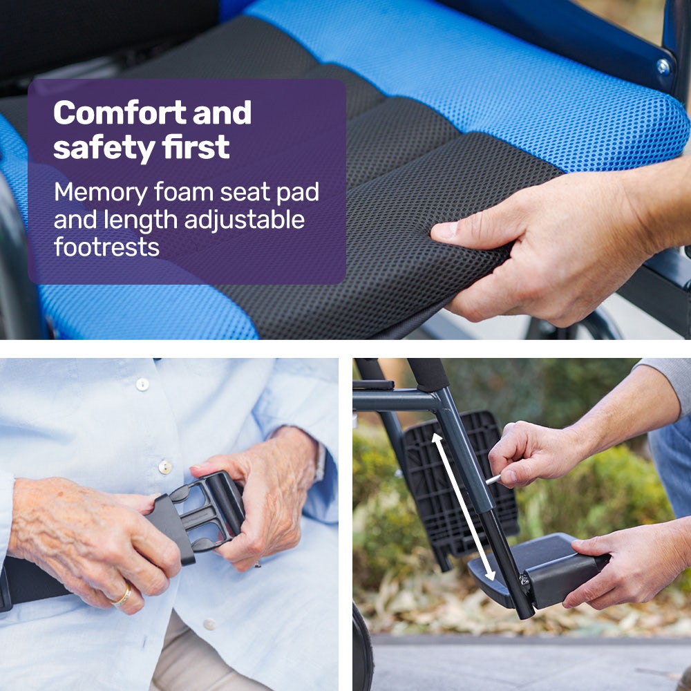 - Memory foam seat pad and padded backrests for comfort