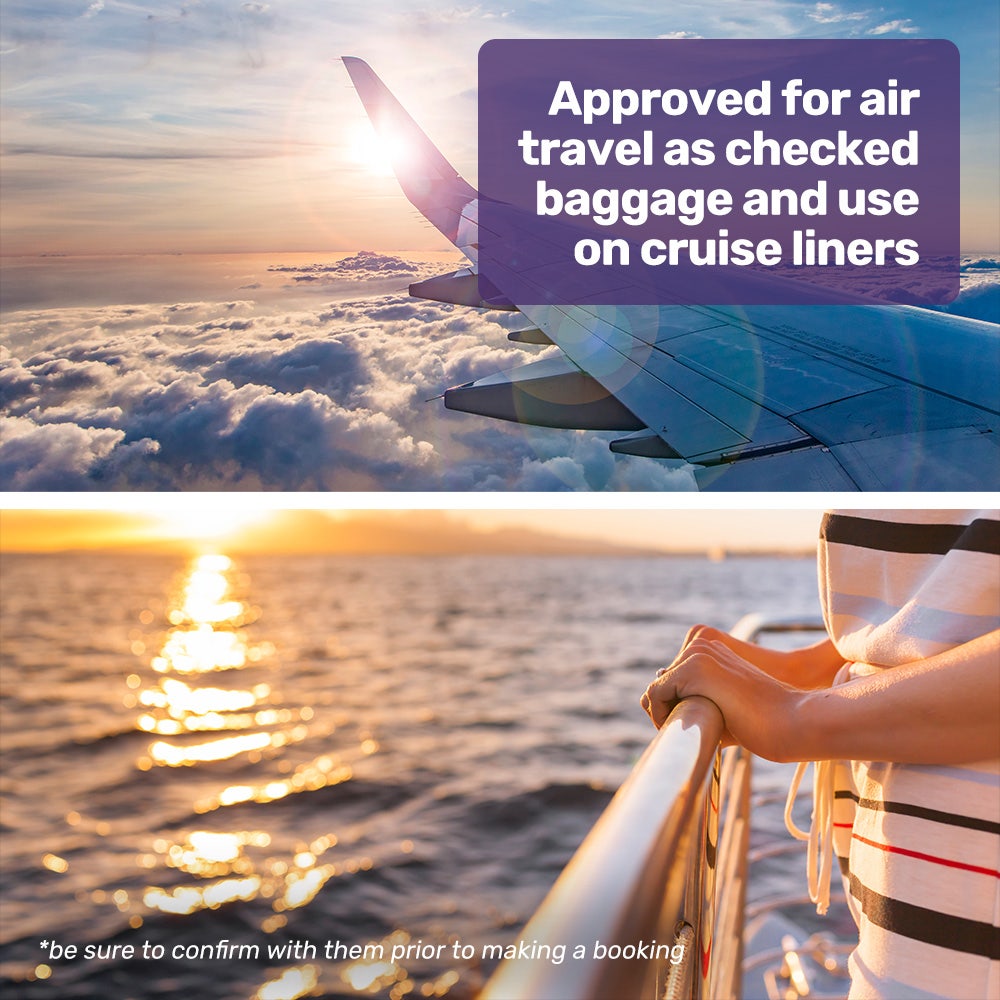 APPROVED FOR MOST AIRLINES AND CRUISE LINERS