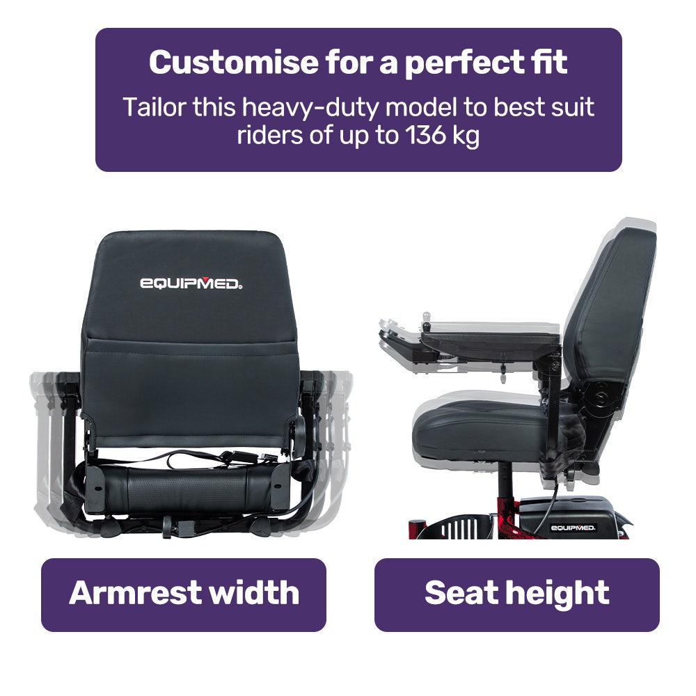 The Equipmed PowerCruise Paramount Heavy Duty Electric Wheelchair is the ultimate solution for anyone in need of reliable, comfortable long-range mobility solutions.