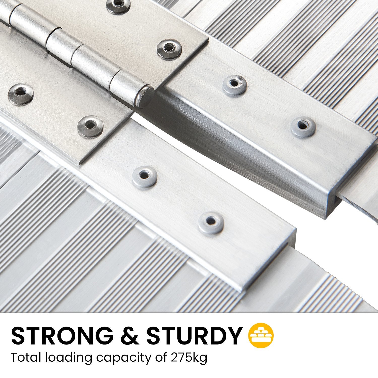 With its high-strength aluminium construction, this ramp can accommodate up to 272kg (600lbs). The non-slip surface and guardrails ensure your peace of mind and safety.